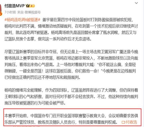 深夜2点,杨鸣发文回应CBA争议吹罚!名记:等CBA追加处罚