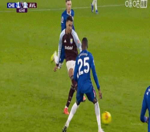 第63分钟,巴迪亚西勒出球被断,沃特金斯禁区抢射破门,维拉1-1切尔西